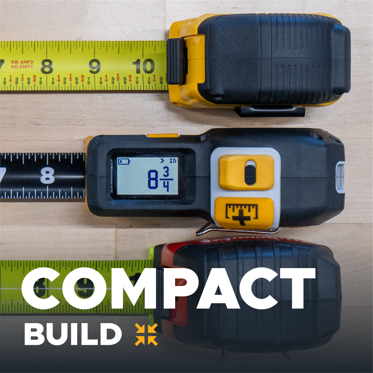 It’s our most compact tape, with a built-in marking square and long battery life. Ideal for quick, everyday measuring without extra bulk. (Lowest Price)