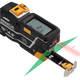 The green laser line projection allows for measurements to be taken from adjacent surfaces and align to external reference points.